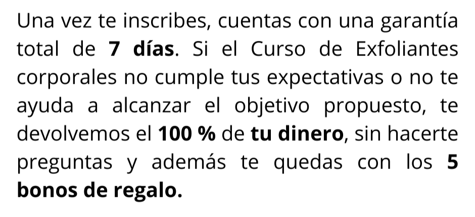 por 7 días, en caso de querer un reembolso.